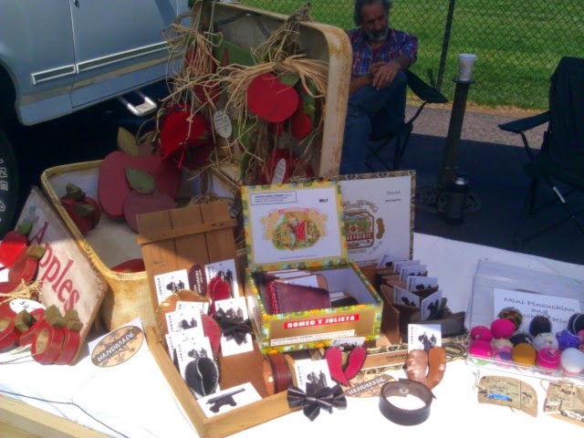 Well ,I did my first craft fair .It was a bust .The only people shopping were other craft vendors .We had maybe 30 people drop in all day.Good thing the hubby stopped in to keep me company ,someone to talk to and share lunch with. Don't despair, I did get to practice setting up , breaking down and packing it all up.I didn't use the displays I made , just a table with a table cloths which where vintage linens .Love Foo Foo lacy stuff. So this is a short, sweet blog with some pictures .Enjoy ,feel free to leave a comment .